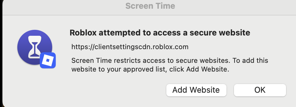 Despite manually allowing specific Roblox-related websites through Screen Time's "Always Allowed" or "Approved Websites Only" settings, these sites continue to reappear in the list of restricted or blocked sites. As a result, access is frequently interrupted, and permissions must be reconfigured repeatedly. The second picture is within the allowed section of screen time.