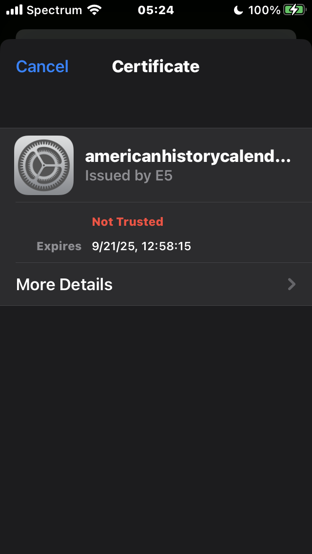 Yeah, iOS doesn’t like the looks certificate its trying to install. Can’t say I would disagree (nor understand why it wants to install one).