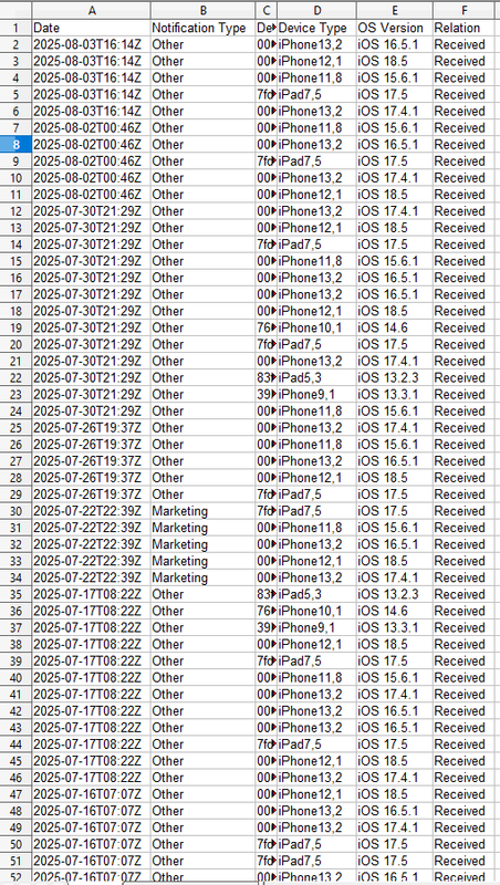 I did not say anything about Privacy Reports in my post. I was referring to the data I downloaded from privacy.apple.com. I've attached a screenshot of one of the csv files from that privacy data which show evidence of phantom devices receiving push notifications below, with the device IDs redacted for my privacy and security.