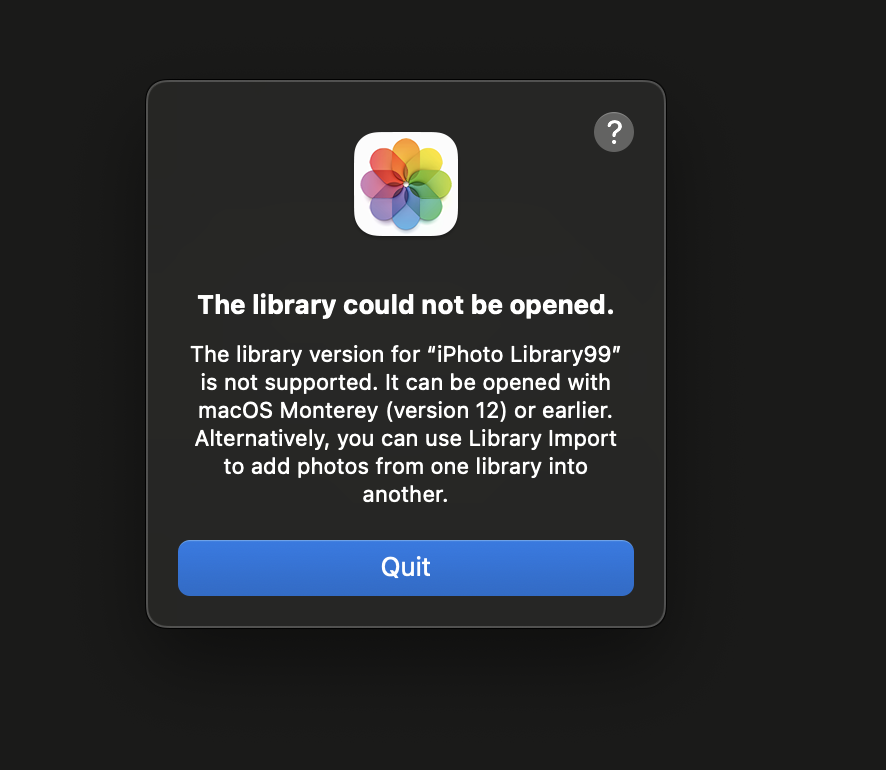 I had this happen but luckily I still have a 2015 iMac with Monterey that still can open the Library.