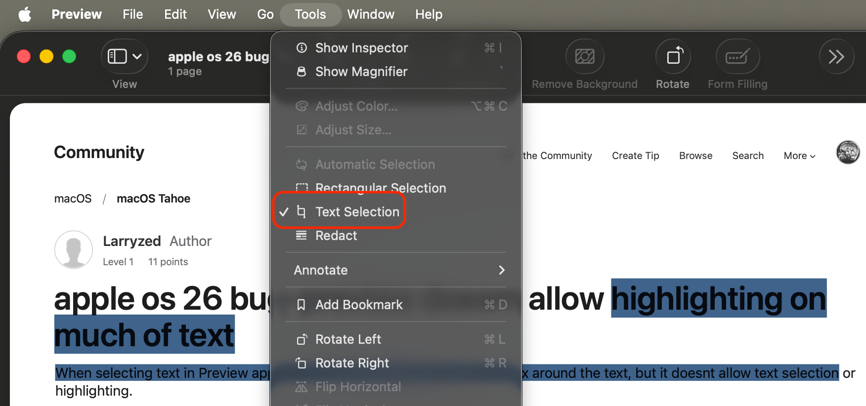 Original Title: apple os 26 bug-preview doesnt allow highlighting on much of text
