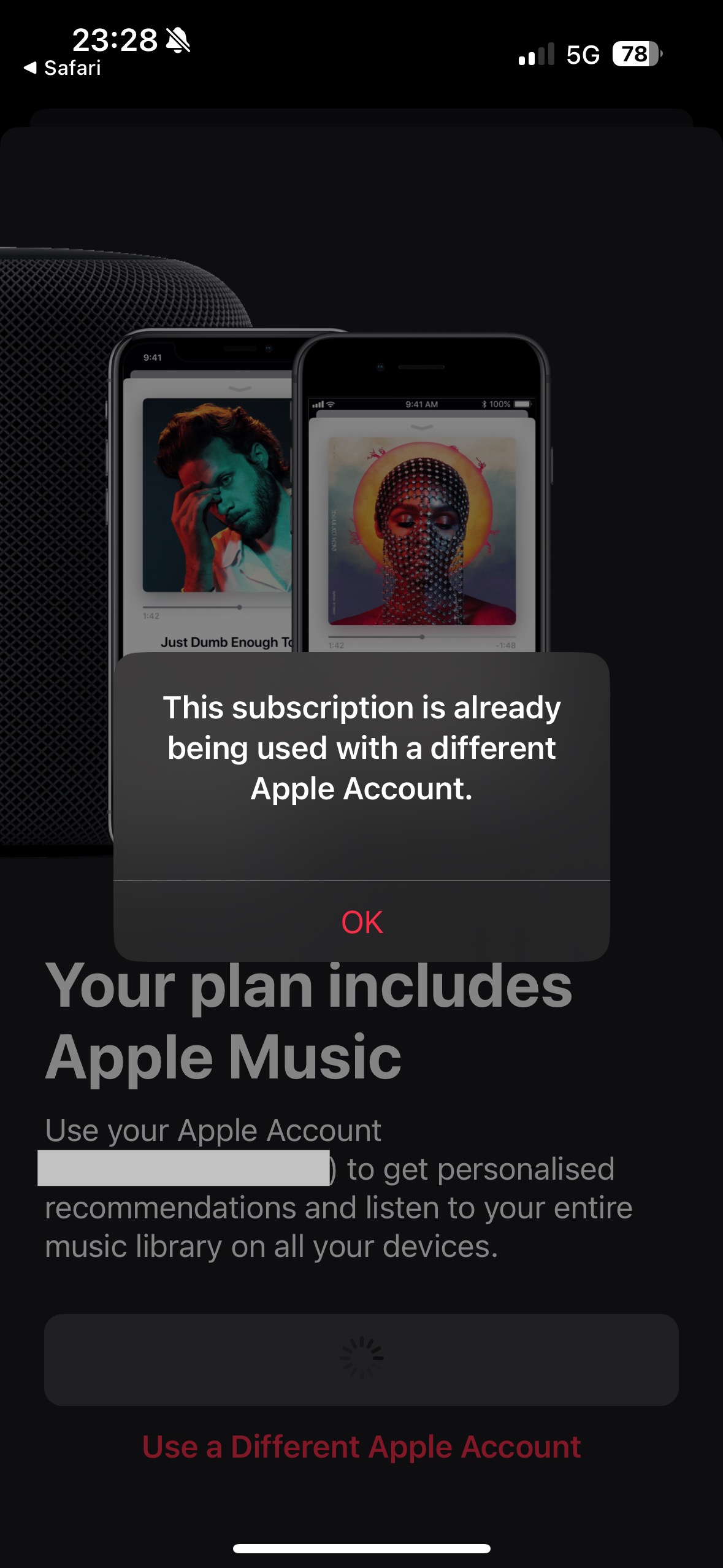 Is anyone else having this issue? I have a contract with EE for my iPhone 16 and as an added "inclusive extra" they gave me the option to get Apple Music for free however whenever I try redeem it through the promotional link they send, it goes onto Apple Music and just says "This subscription is already being used with a different Apple Account". I've gone ahead and contacted EE but they said that the promotion isn't even linked to an Apple account at all and therefore must be an issue on Apple's side, I called Apple and they went through everything they could but claimed it was EE's fault with their link and suggested I call them back. I have been on call with customer service between Apple and EE for the past 3 days and this is honestly ridiculous that no one can get it fixed.