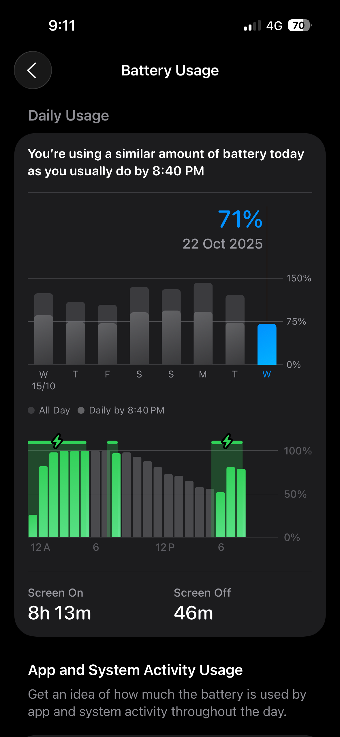 However, after updating to iOS 26 (and even with iOS 26.0.1, the situation remains the same), I continue to have VERY SERIOUS problems with the battery life of my NEW phone.