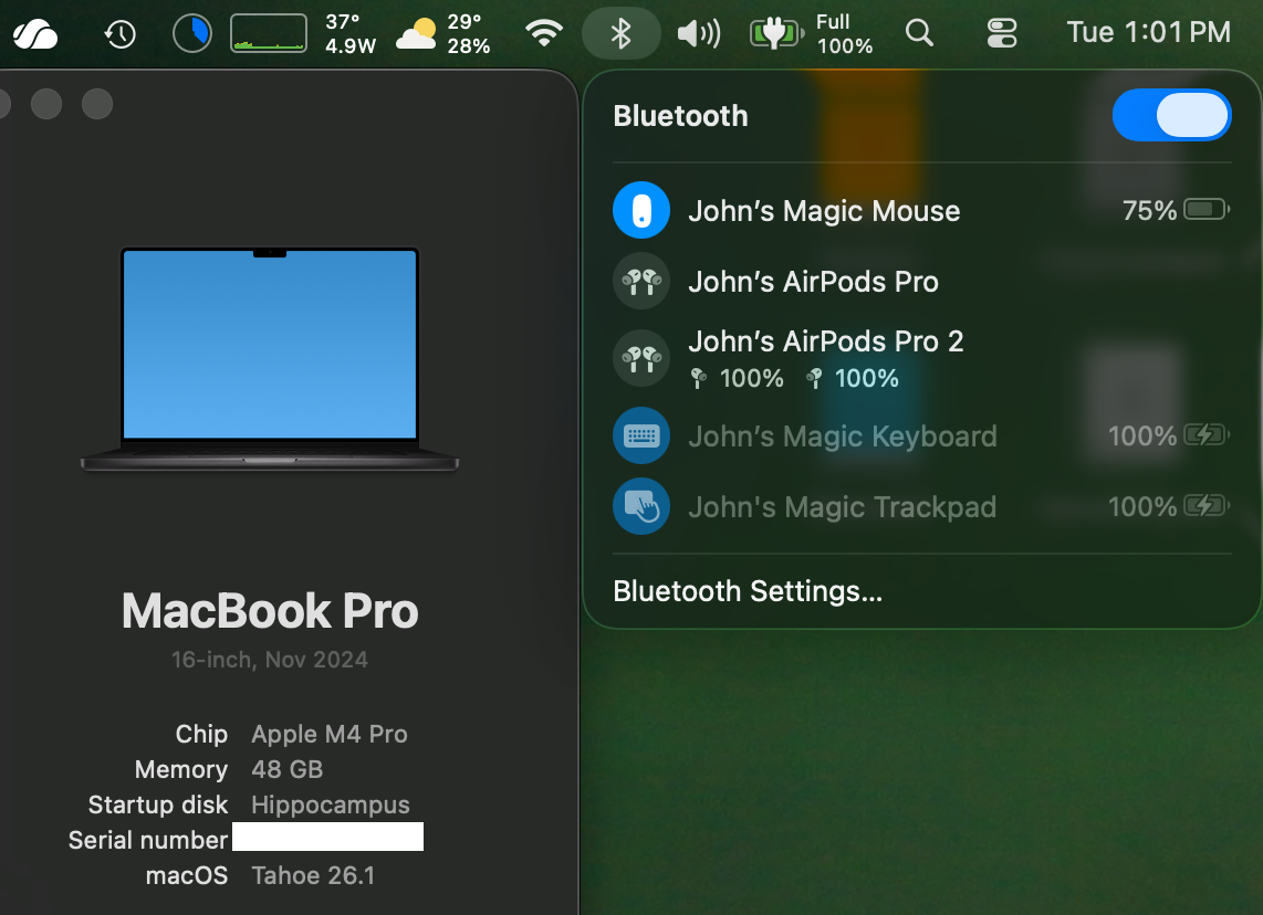 On previous versions of macOS, I used to receive batter notifications on my M-series MBP when my magic mouse was running low on charge. since updating to 26.0.1, there are no battery warnings.