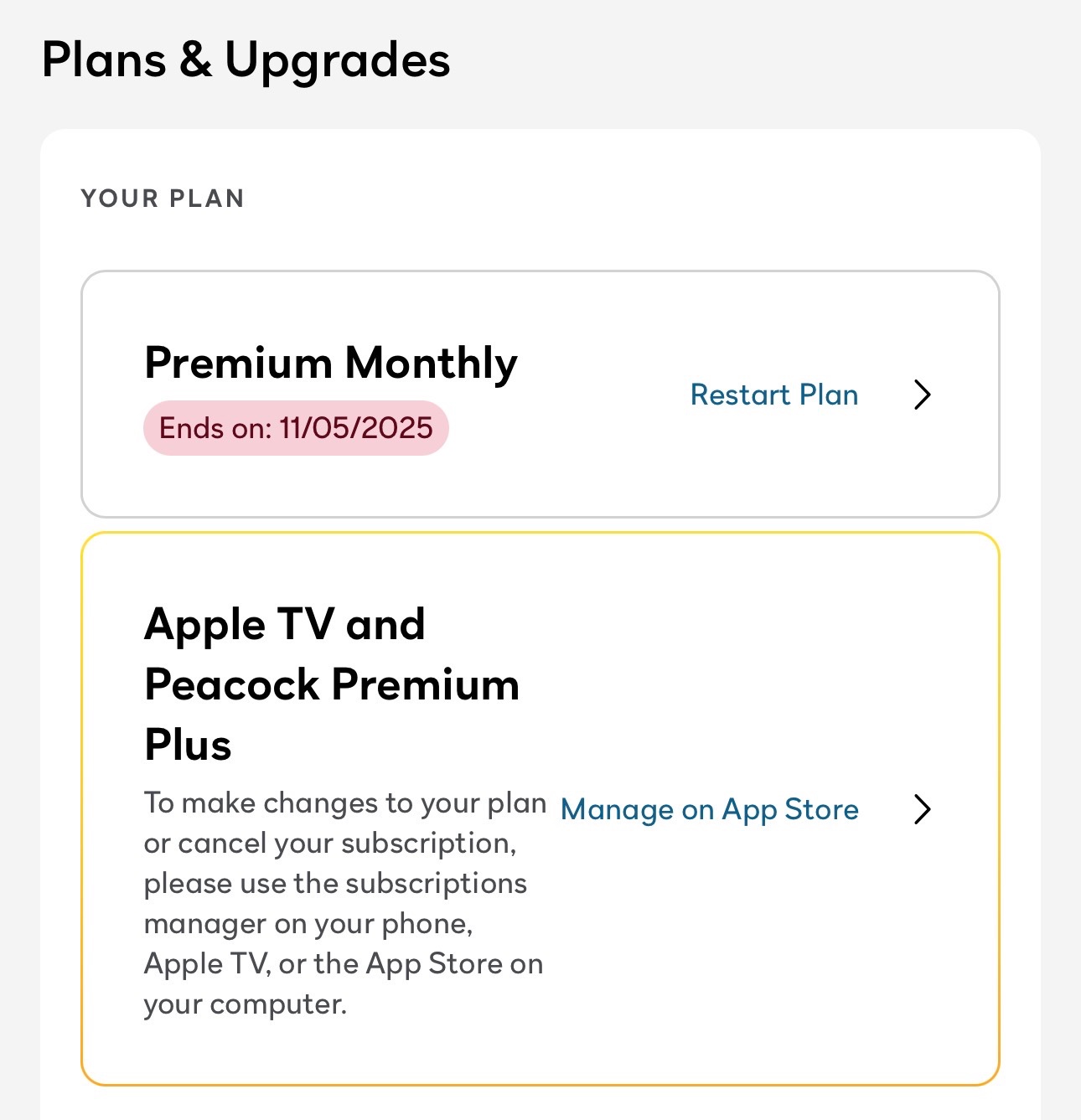 I feel like I'm making progress but still not there yet. Again, Apple One subscriber, and I want to pay $11 more per month to add Peacock Premium Plus (as advertised), not pay for a second subscription to Apple TV and Peacock at $20/month.