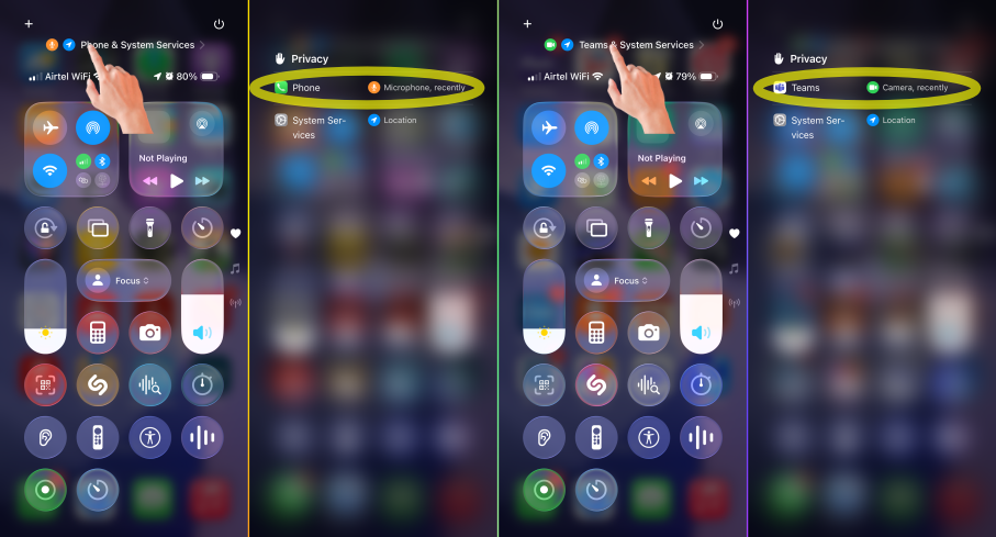If Control Center displays “Unknown Device” next to the microphone or camera indicator, it may indicate that an accessory connected via Lightning, USB-C, or Bluetooth — such as an external microphone, webcam, or certain headsets — is requesting audio or video input, but iOS is unable to fully identify the device.