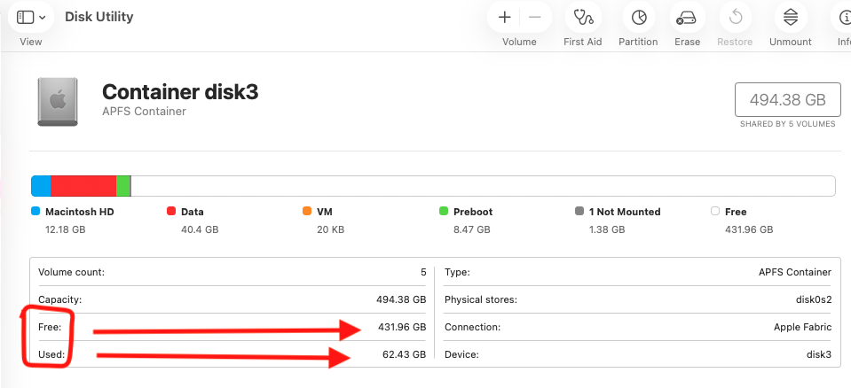 Refer image below on a M4 Desktop 16 GB Unified RAM / 500 GB SSD drive