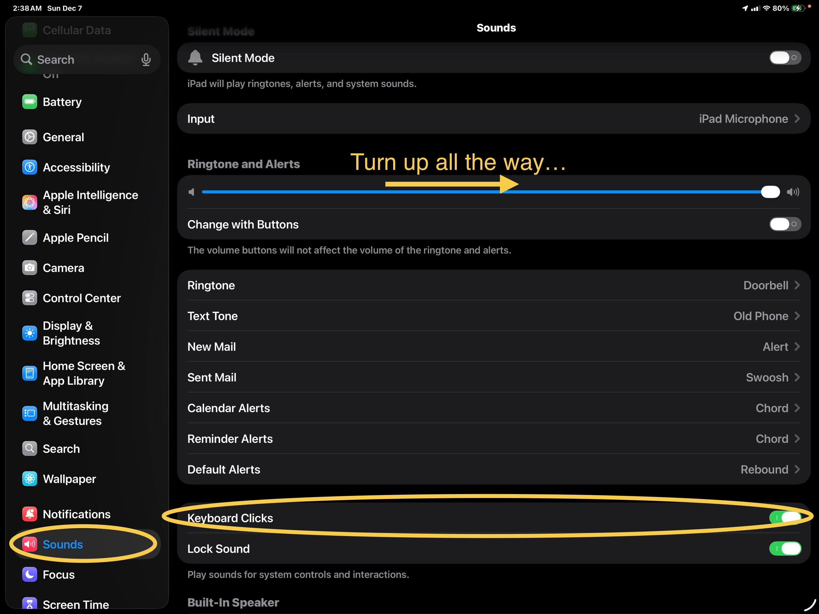 I have tried everything to get keyboard clicks on iPad 11 a16..wondering if this iPad could be defective ..any advise?