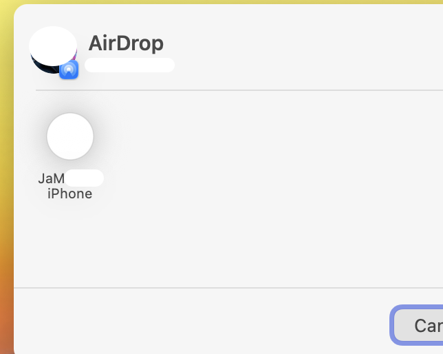 The AirDrop icon is missing on my MacBook Pro (macOS 26.1 (25B78)) for my iphone 17 Pro Max (iOS 26.1), see attached image.