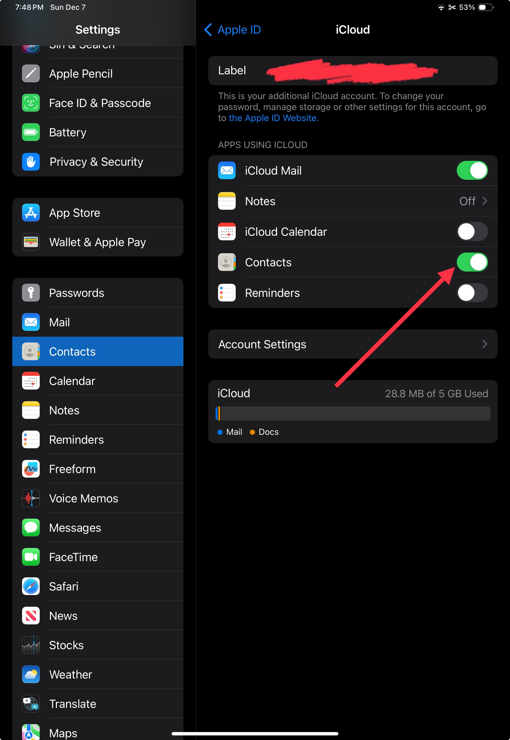 How to maintain separate 'My Info' and 'My Card' settings in shared iPhone Contacts accounts?