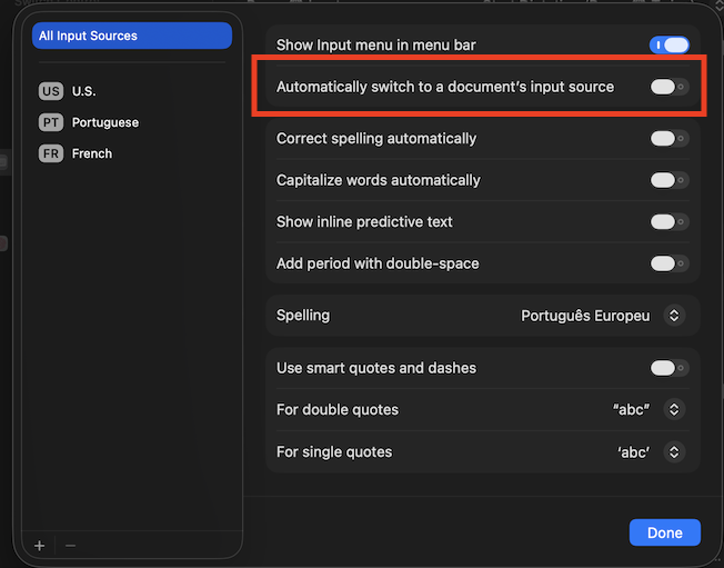 So i have shortcut (CMD + Space) for "previous input source". I have to switch between English and Ukranian pretty frequently.