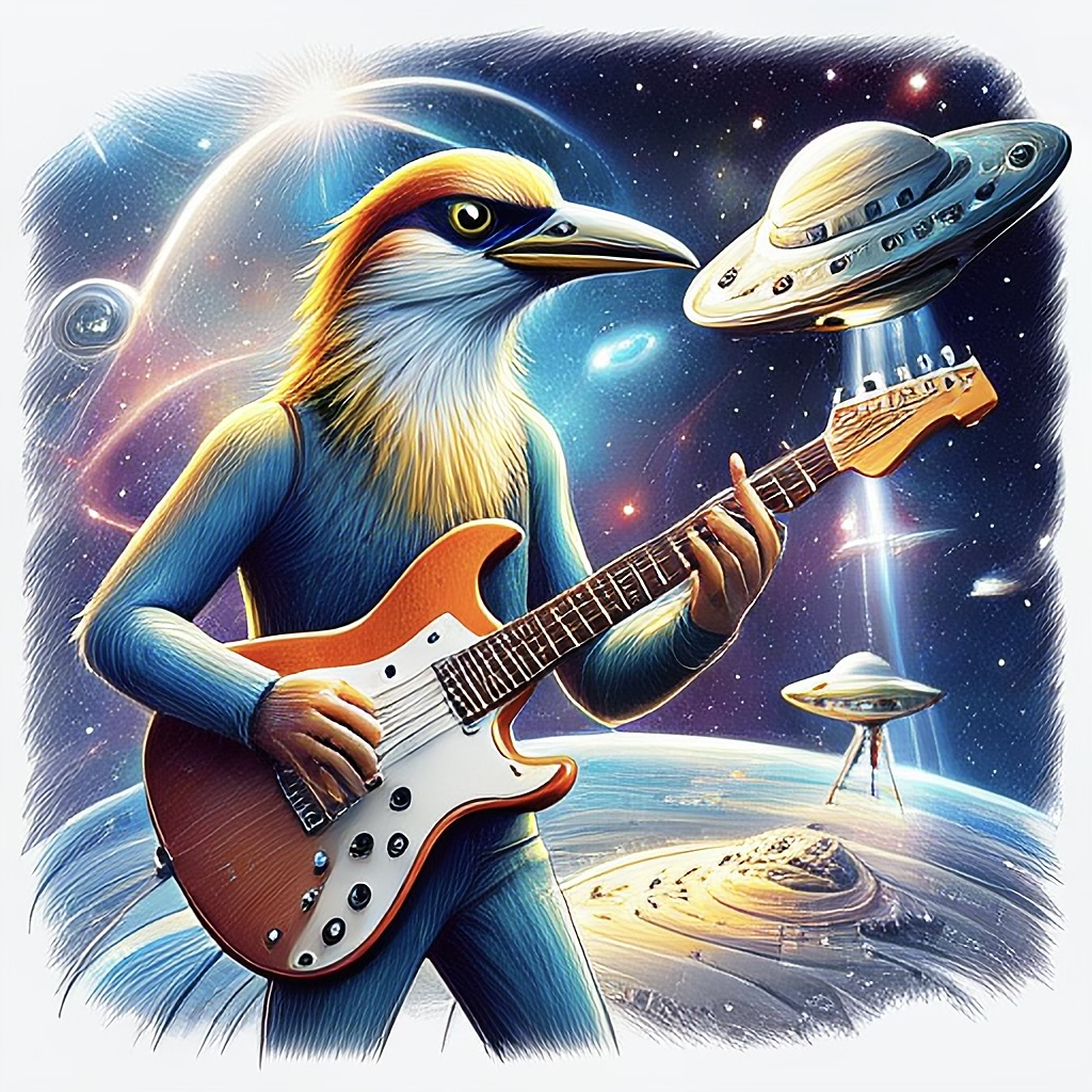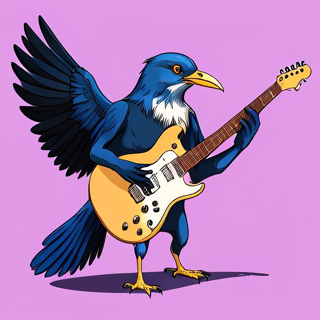 E.g., "Bird playing electric guitar" (Illustration style):