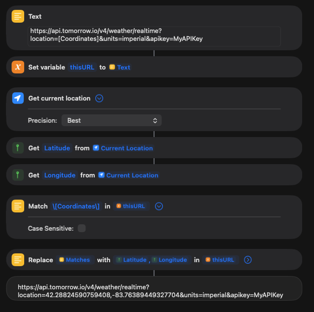 https://api.tomorrow.io/v4/weather/realtime?location=[Coordinates]&units=imperial&apikey=MyAPIKey