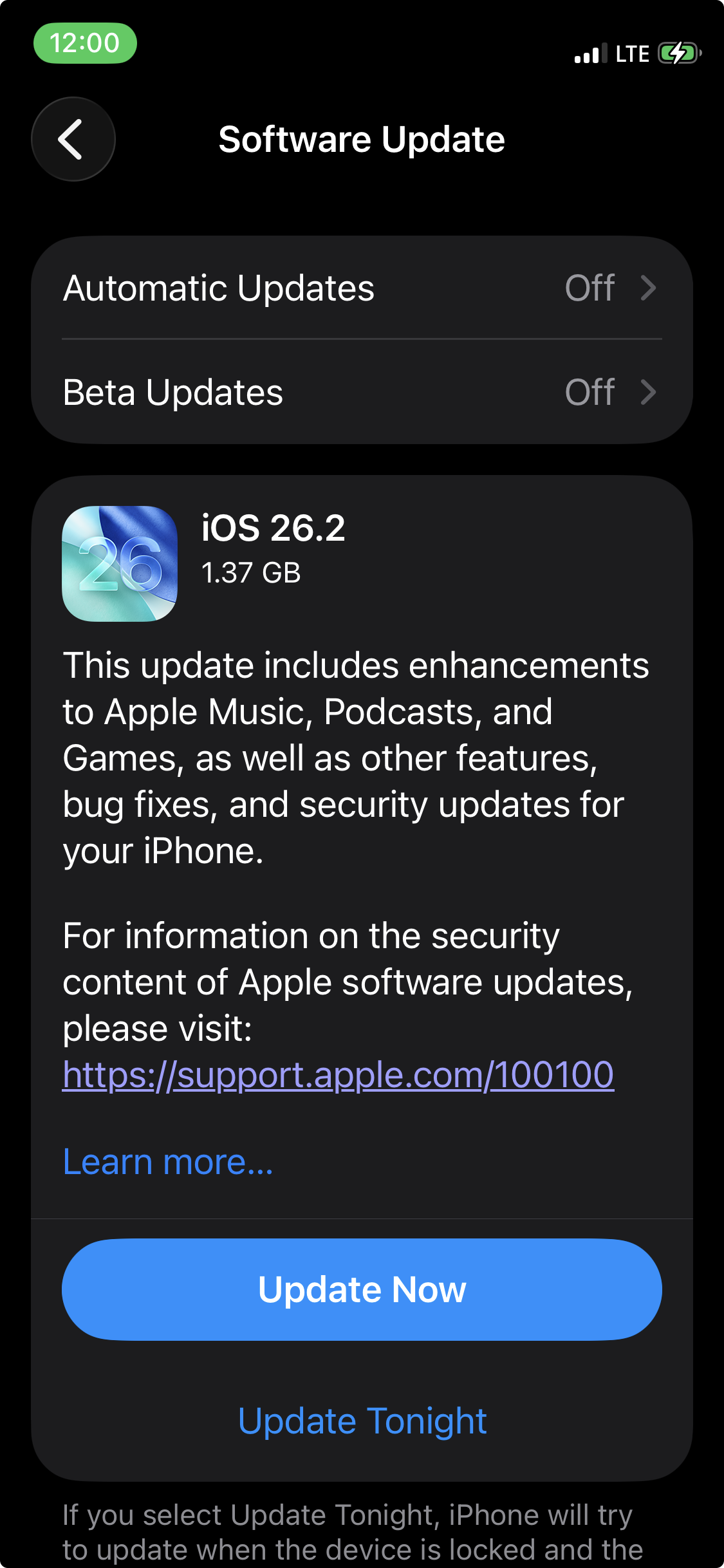 Greetings! I haven't been able to upgrade to any iOS version for two or three months now. I download version 26.2 and, as usual, I get an error saying it is temporarily unavailable. I've tried everything to install the version, and if I try to install it via a computer, an error appears during the update process and the phone turns into a brick!