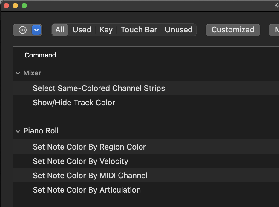 How do I change color of individual notes in the Piano Roll (Logic Pro for Mac)? By default, under View ➡️ Set Note Color it's set to By Velocity. But I'm working on a pretty complex MIDI sequence and I find myself wanting to color-code the notes to make it easier to differentiate different parts at a glance. I open the "Color" panel and select some notes, but clicking on a color in the color panel doesn't change the note colors. Any suggestion about how to color code notes in the Piano Roll?