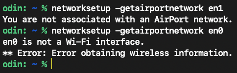 networksetup -getairportnetwork en1