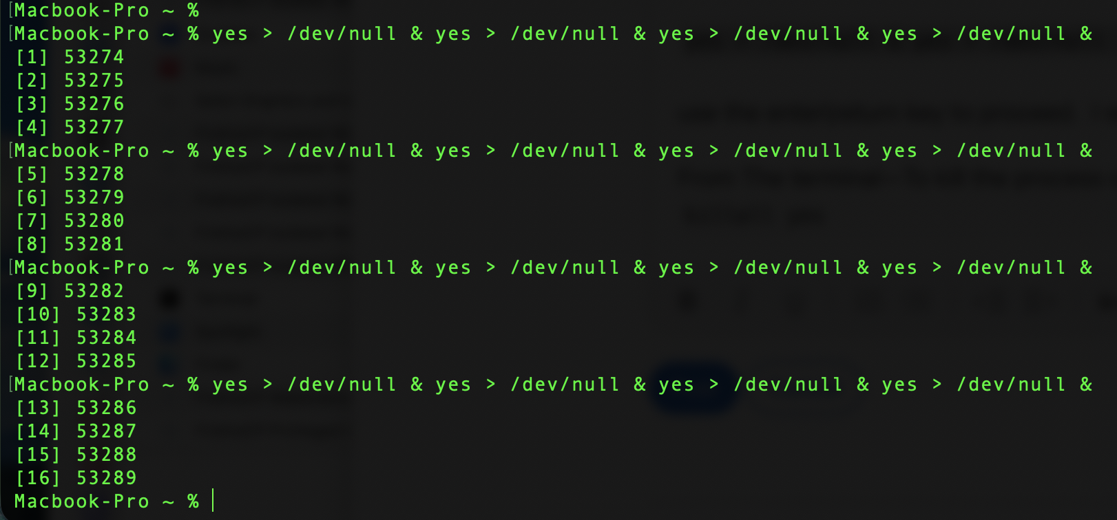 yes > /dev/null & yes > /dev/null & yes > /dev/null & yes > /dev/null &