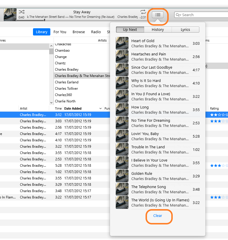 - If you tap the Clear Songs button it simply empties the Up Next list and plays the song that you have just double-clicked on. It does not delete existing Playlists or songs from your library