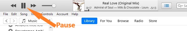 - or - you have previously used the menu option Controls/Stop, which will put the player into full stop mode as opposed to the pause mode. Note that when iTunes is playing a song that the large control icons at the top of the iTunes window show a Pause button, not a Stop button: