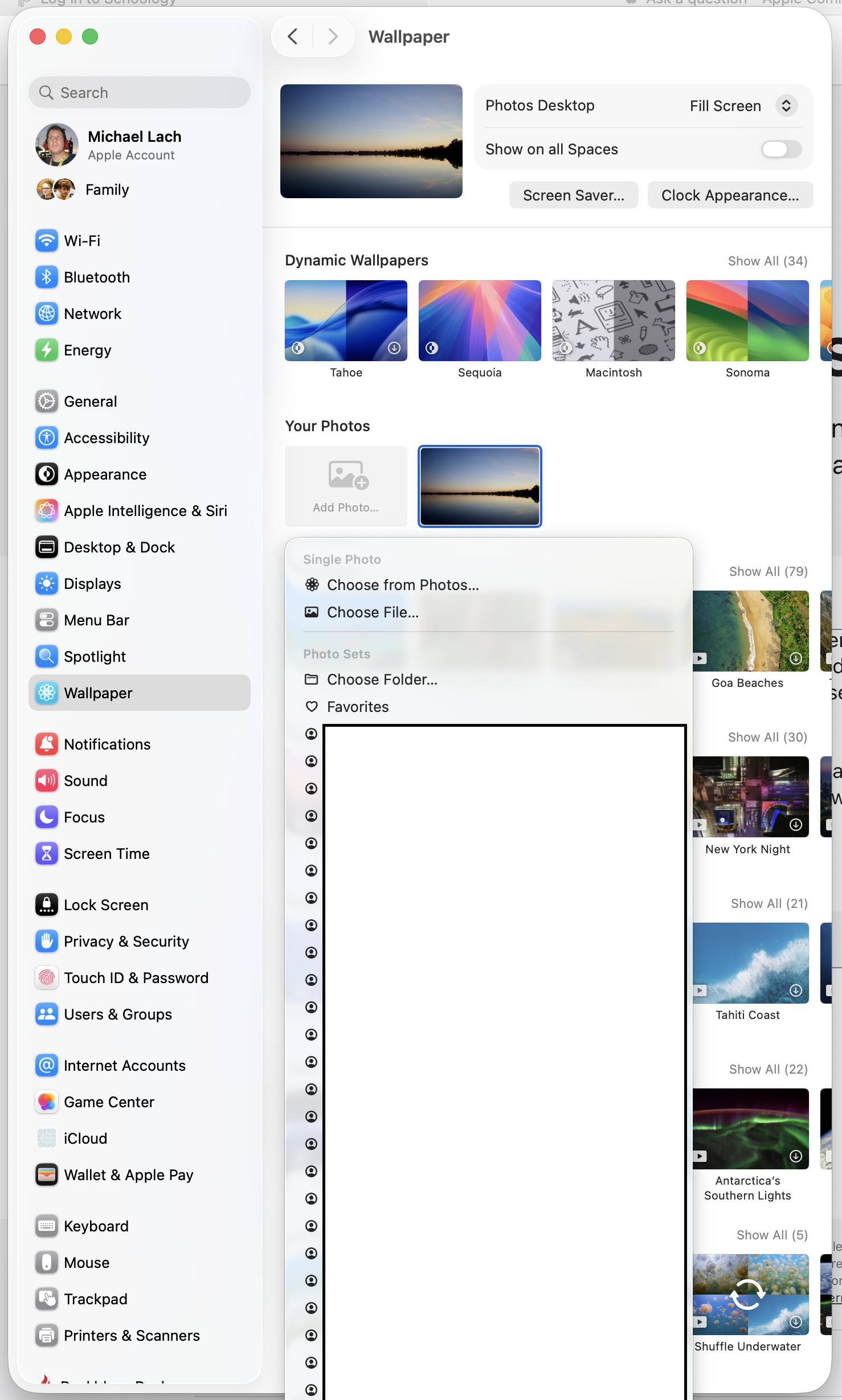 I'd like macOS Tahoe to randomly select a photo from my Photos library that is a favorite and has the tag "desktop" to make my wallpaper background, and then change that selection once a day.