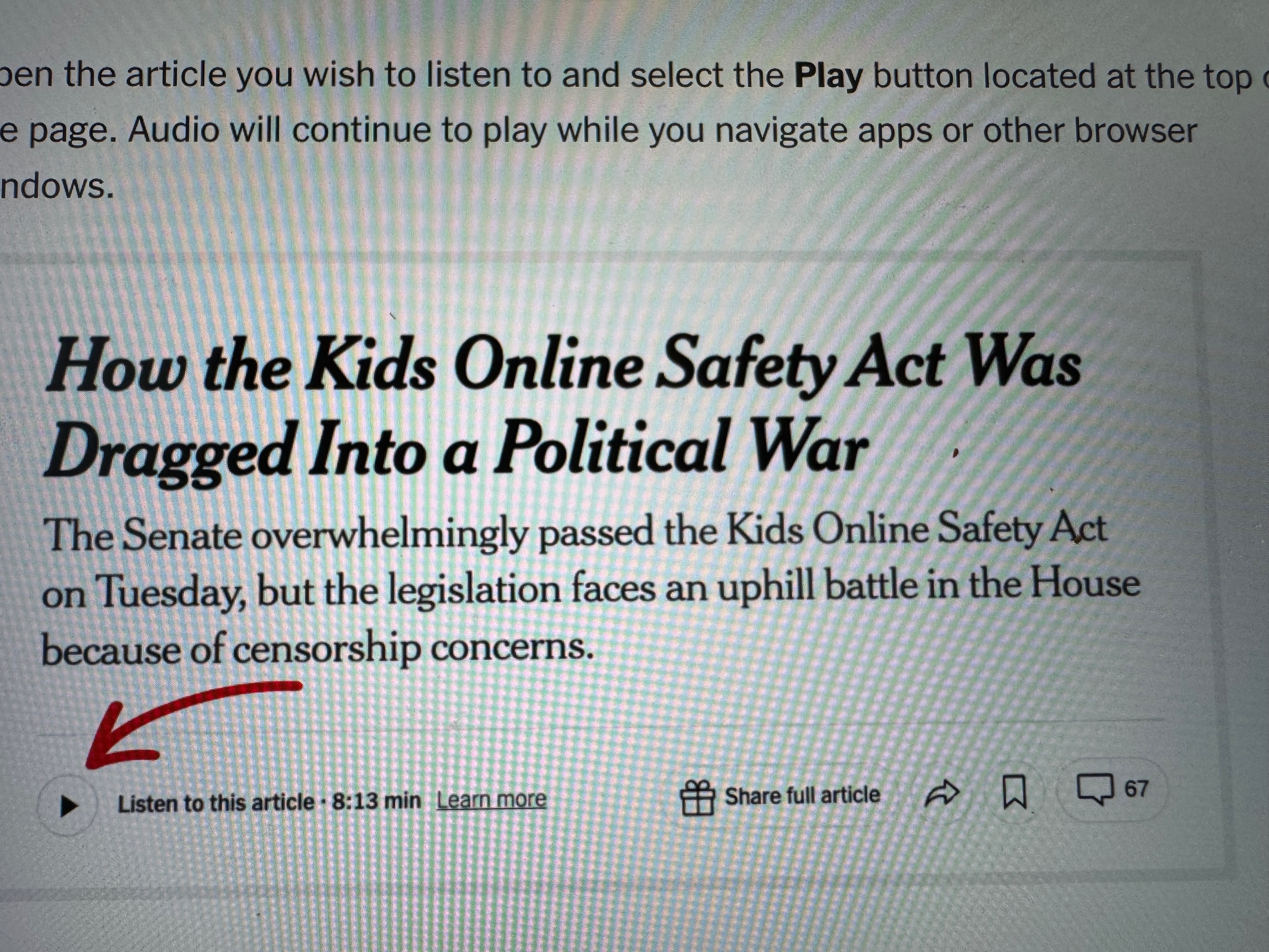 I have an older iPad Pro (9.7-inch) running IOS 16.7.12. I believe this was the latest IOS update for this iPad. When reading the New York Times on my iPad, most articles have a small "Play" button so that an automated voice reads the article.