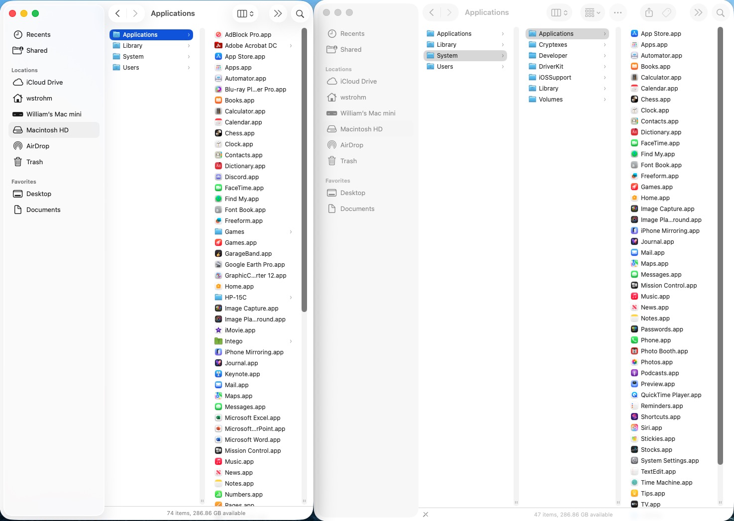 Rather than ask the question again, I will just post the attached screenshot, which shows my Applications folder on the left, and my System/Applications folder on the right. I think you can see the problem. This is from my M4 Pro Mac Mini running macOS Tahoe version 26.2.