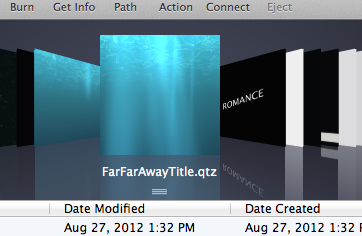 Please see the before and after screenshot of the file FarFarAwayTitle.qtz thumbnail below.