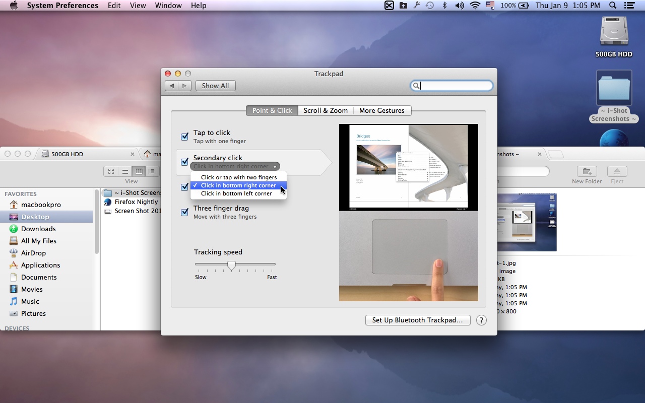I recently got myself a Macbook Pro 8,1 with a fresh Mavericks 9.1, & after exploring this new Mavericks for a bit I realized that my MB's trackpad right-click button wasn't doing what it does on my MB 7,1 – bring up context menus. After going to Obvious Place #1 thru Obvious Place #7 or so, I was dumbfounded as to HOW to get my MB's goll-danged trackpad right-click button to work & bring up context menus in Mavericks. I KNEW it was possible, but..... ugghh...