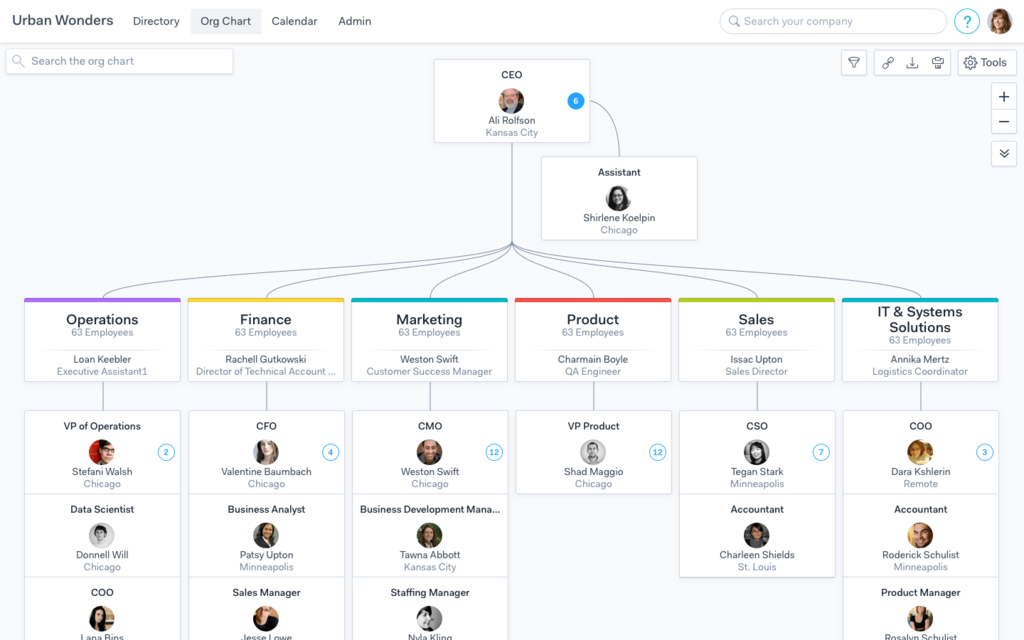Here is an example of the type of org chart you can build with Pingboard: