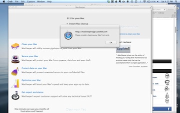 MacKeeper windows pop up, getting through Safari's ad blocker, and are impossible to close without re-starting Safari. If you check out the "support" area on Apple you will see dozens if not hundreds of complaints with the same problem: ads touting MacKeeper, a ZeoBit product, pop up while using Apple's Safari browser. Normally you can close a pop-up by clicking on the red button on the pop-up window, but unlike any other pop-up windows, these windows have the red, yellow and green buttons on the left top of the window grayed out. There is an "OK" button on the pop-up - OK meaning that you want to buy MacKeeper! - and that is the ONLY option available to you once one of these windows pops up unless you stop and re-start Safari. And then, once you re-start Safari, the window pops up again. There is a workaround available but it's difficult to find and implement. MacKeeper's ads are like having a telemarketer call your home and then refuse to hang up - permanently keeping you from using your phone again unless you unplug the phone from the wall. It's horrible, deceptive and harassing.