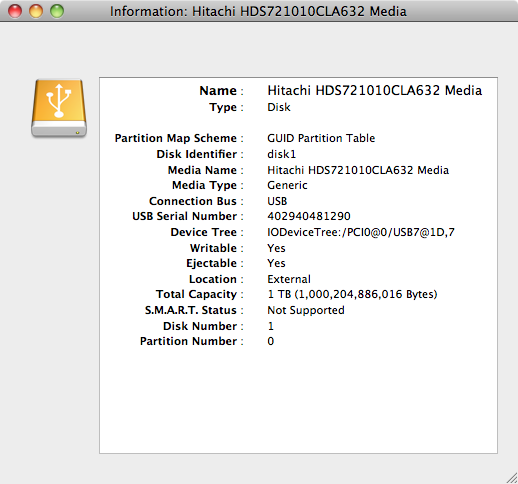 Here's another screenshot of the information; this was done while selecting the actual drive from with Disk Utility (as opposed to its parent, upper-level disk description):
