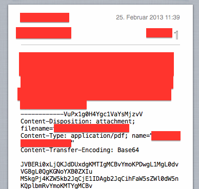 I add this account to in Mail and then some of the PDFs are damaged and can not be corrected. The interesting matter is that via web-access and Outlook 2011 there is not a problem.