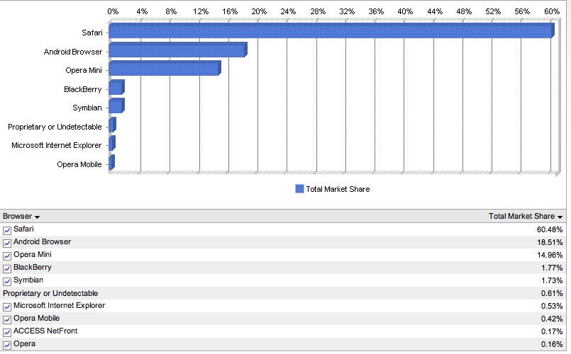and yet, 65% of those using the web with mobile devices happen to be using iOS. (with Android coming in at a whopping 19%. Most of those are probably playing the fruity pebbles game. 😁)