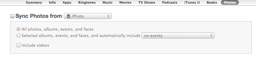 Moreover, when I see my device in iTunes, in the Photos section, I originally had it set to "Sync Photos from iPhoto - All photos, albums, events and faces". if I change it to "Selected albums, events, and faces" I get a list with all the duplicated events. (see screenshot)