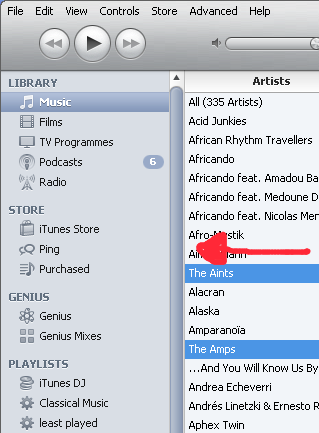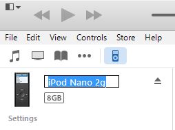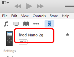 2. Select iPod by clicking on the icon shown at the top left of the iTunes window: