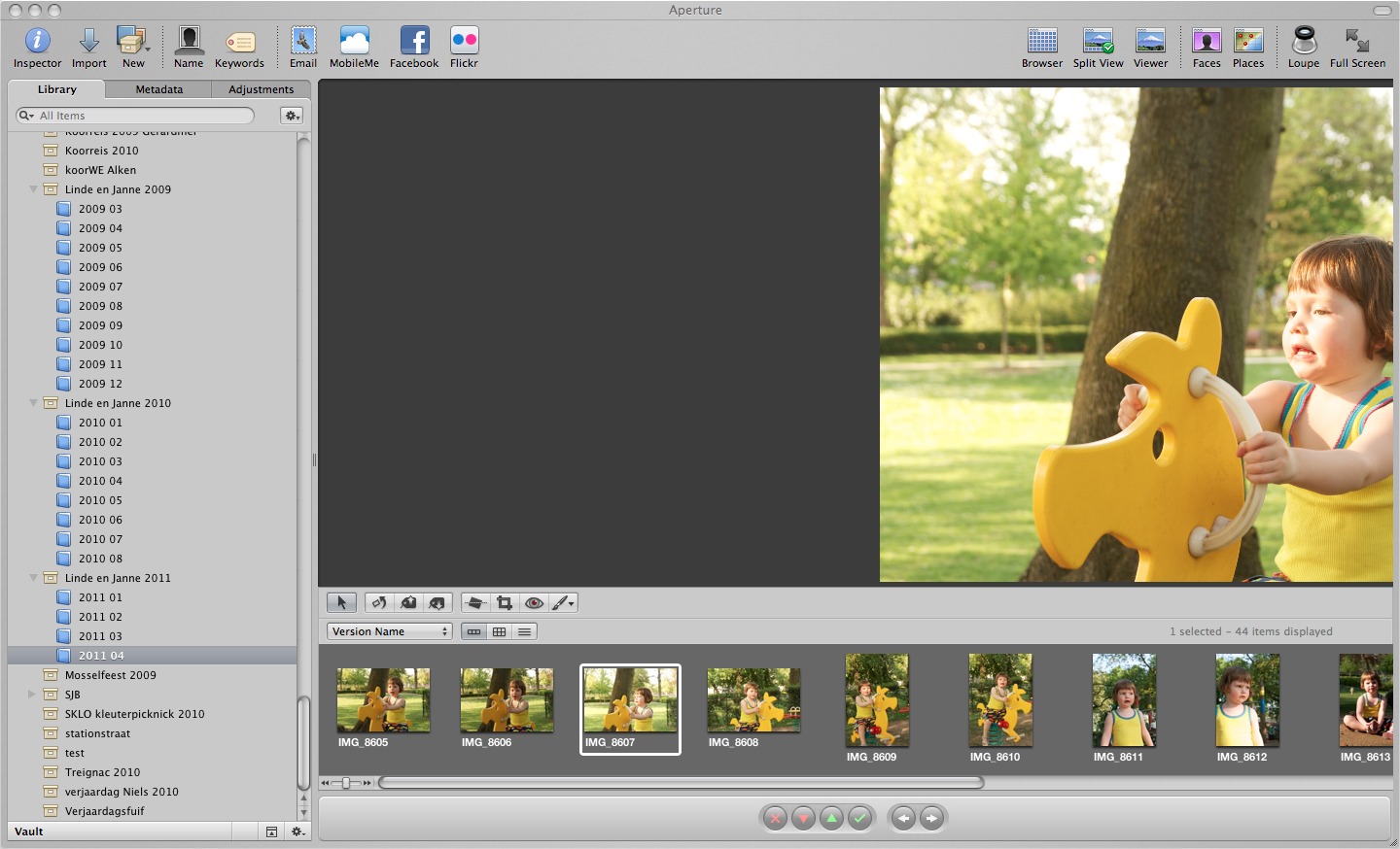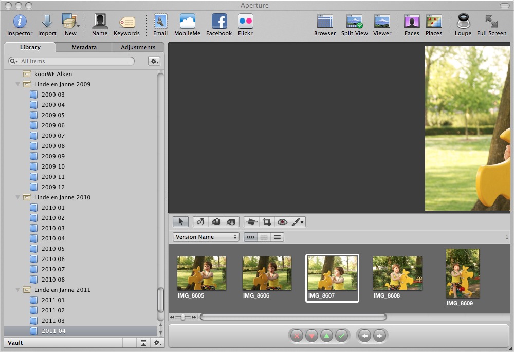 I am using Aperture 3.1.2 on a MacBook Pro. The problem is there for any picture in any project/folder/album/... The problem persists after quitting and restarting Aperture, and even after rebooting the computer.
