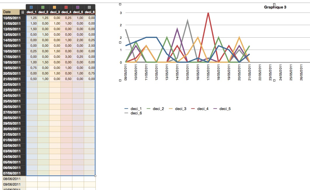 So I'm having a lot of trouble putting my data on a chart. I have it all laid out here: files.me.com/redsteven1/glwk4v.numbers.zip