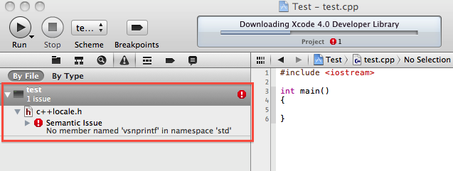 I have encountered "Semantic Issure" with C++ projects in Xcode 4 as following: