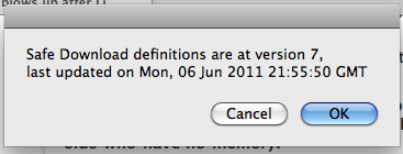 But, I ran across this (pasted below) today when checking Console, and if anyone can dechiper logs, maybe some independent analysis will tell me why I'm not getting the "MacDefender" scan this security update was supposed to provide (and why the subject .plist has never updated since installing the Security Update on 2 10.6.7 Intel iMacs 4 days ago).