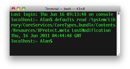 6/4/11 12:15:50 PM com.apple.launchd[1] (com.apple.xprotectupdater[39]) Exited with exit code: 255