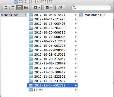 (I do not have experience for use Time machine before, just worry the back up will overwrite old backup, so I am sure no new back from my new MBA to the Time Capsule, picture above are list my backup of my stolen one)