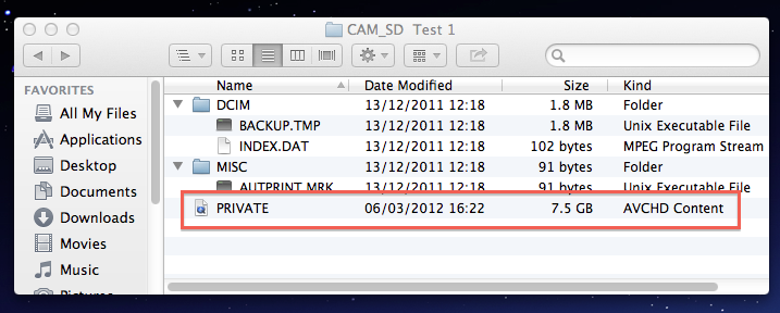 It appears to be simplified and the "Private" folder is no longer a folder but a QT type file which when double-clicked opens in QT Player.