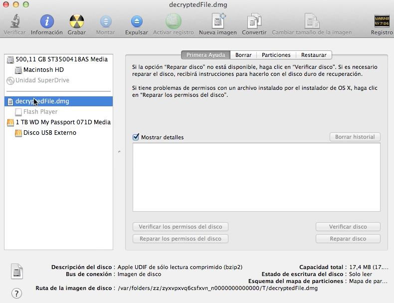 the disk image shown under the title of the file is greyed out and indicates 'not mounted'.
