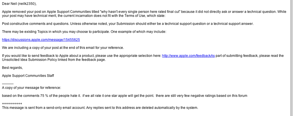 My name is John David, and I'm on the iTunes Store Customer Support team. My team can answer non-technical questions about Mac App store billing issues, accounts, store content, downloading purchases, and related topics, but we can't answer questions about the functions of the Final Cut Pro v10.0 App.