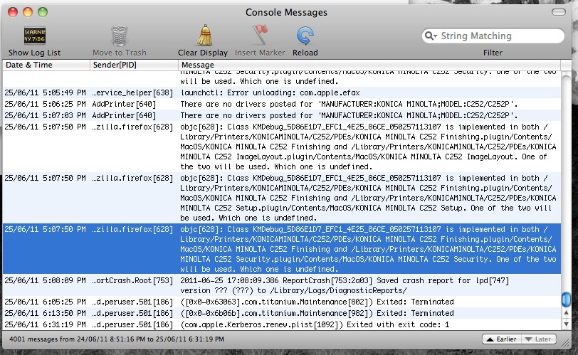 Screenshot of Console error message relating to "class ... implemented in both ... One of the two will be used. Which one is undefined". I've no idea what this is, or what it relates to, and would appreciate help with troubleshooting the slow login/out issues and printer problems. Firefox seems to be behaving atm after removing some add-ons.