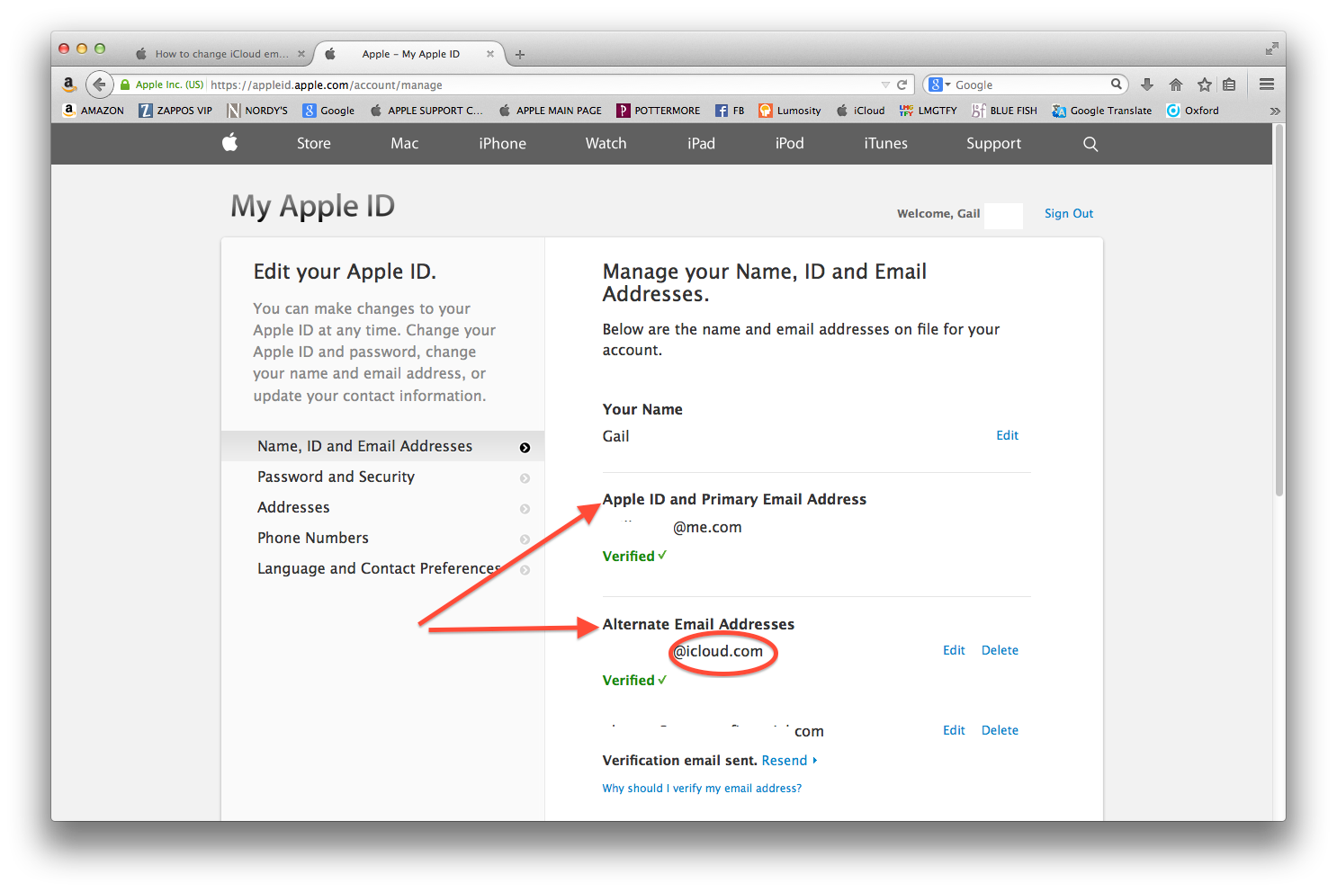 this allows you to have the correct icloud email address and preserve your separate apple id