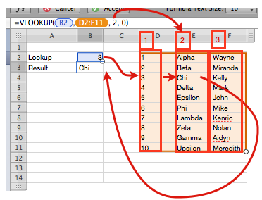When you perform a vertical lokup you search through the first column for the "search-value" or key. When you find and exact match (or closest value, depending on the 4th parameter) the value in the same row but in the requested column is returned.