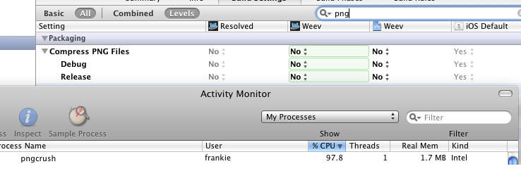 Xcode Archive; Organizer slow/not responding; pngcrush hogging cpu