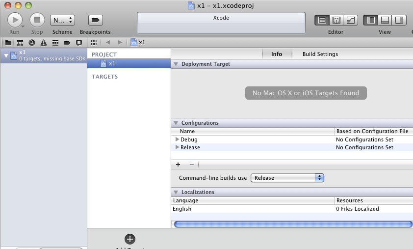 OK, K T, I did what you asked. I now have the same build as you (4.0.2 • 4A2002a). And I find the behavior is . . . unchanged! I can get the same window you pictured in your last email (as I could before). But as I stated earlier, I can't get there unless I've first created a project. And, when I click on Empty, I get a window that looks like the second picture in my above post, not the third.