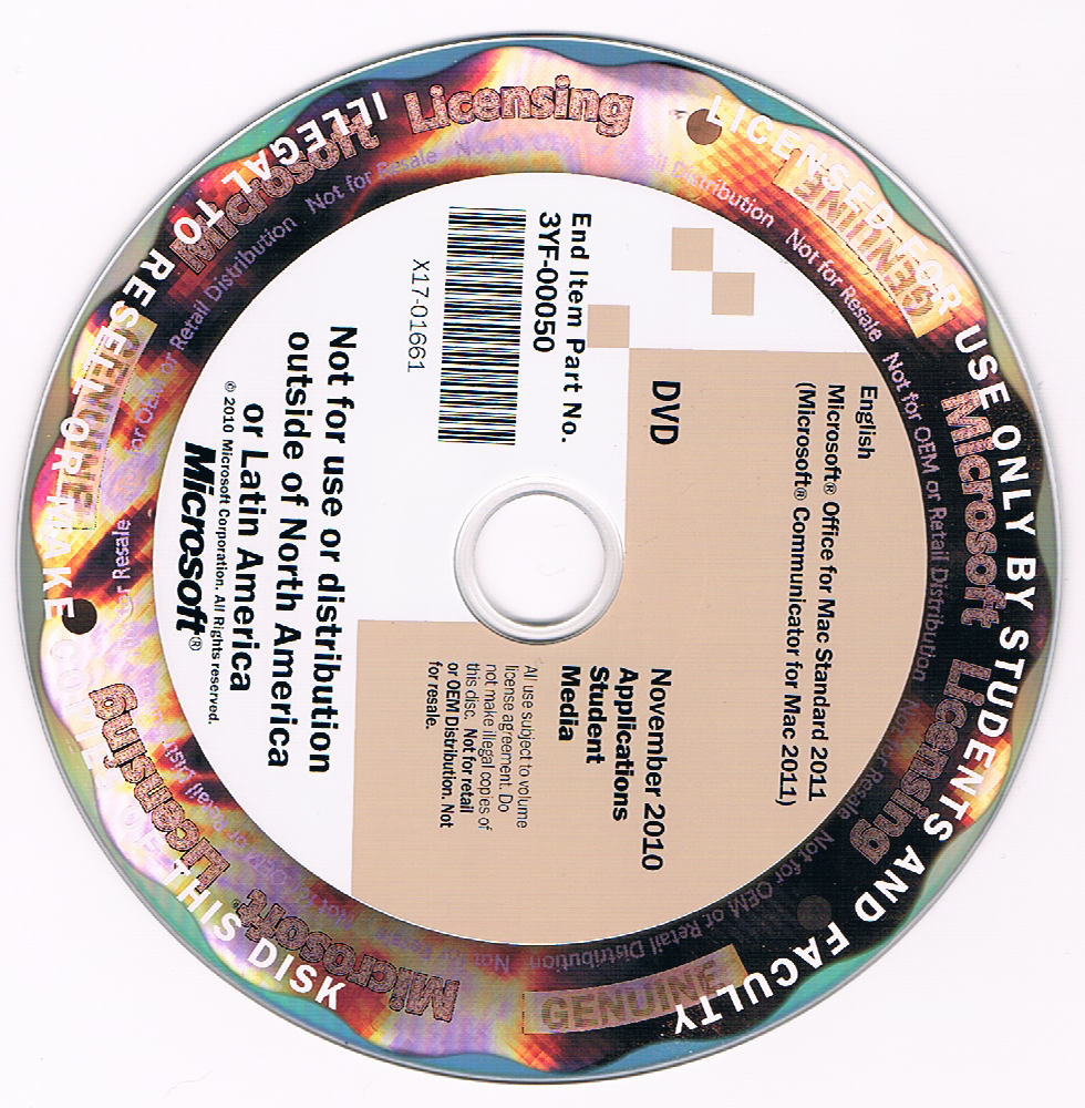 I can't find the Office 2008 disc; it's probably at the office, that being were I tested it under Lion, as Lion ain't on my home machine. (and won't be, either.) However, it's similar to the ones I've posted. I have found student and teacher discs for XP, Vista, Win 7, Server 2003, and other items. Do you doubt that the Office 2008 disc exists? If so I'll continue looking for it.